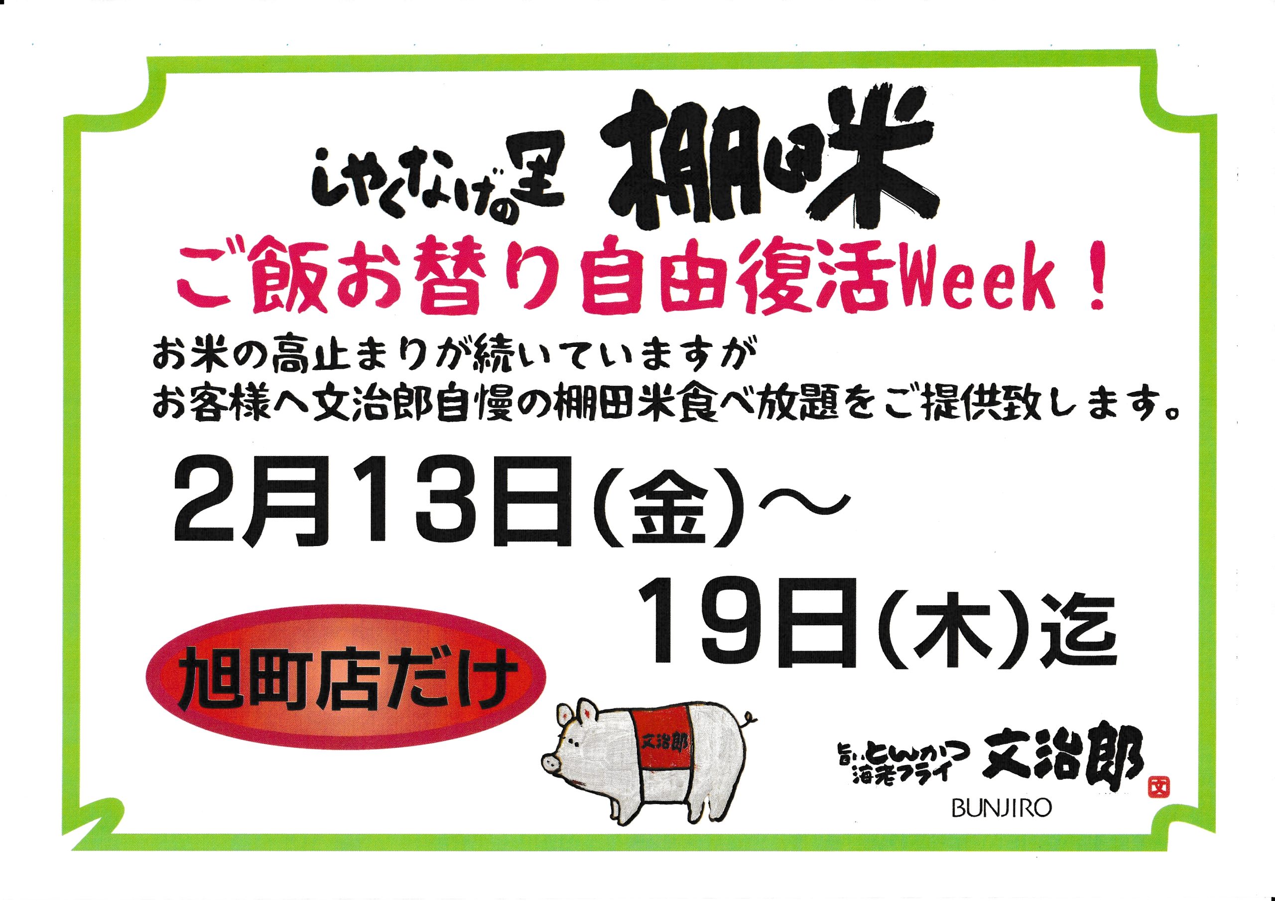 旭町店限定!【ご飯お替り自由復活Week‼】